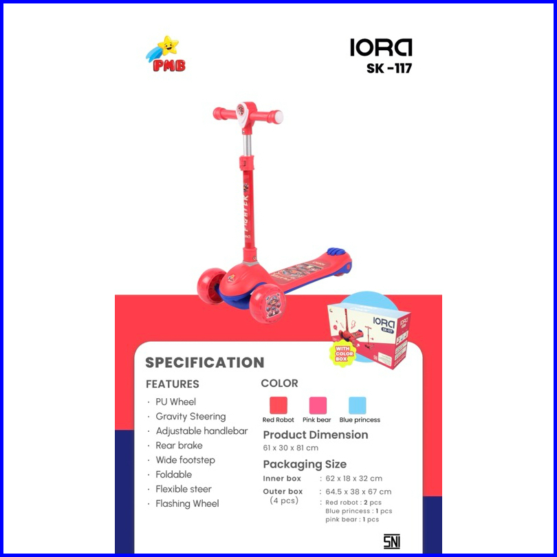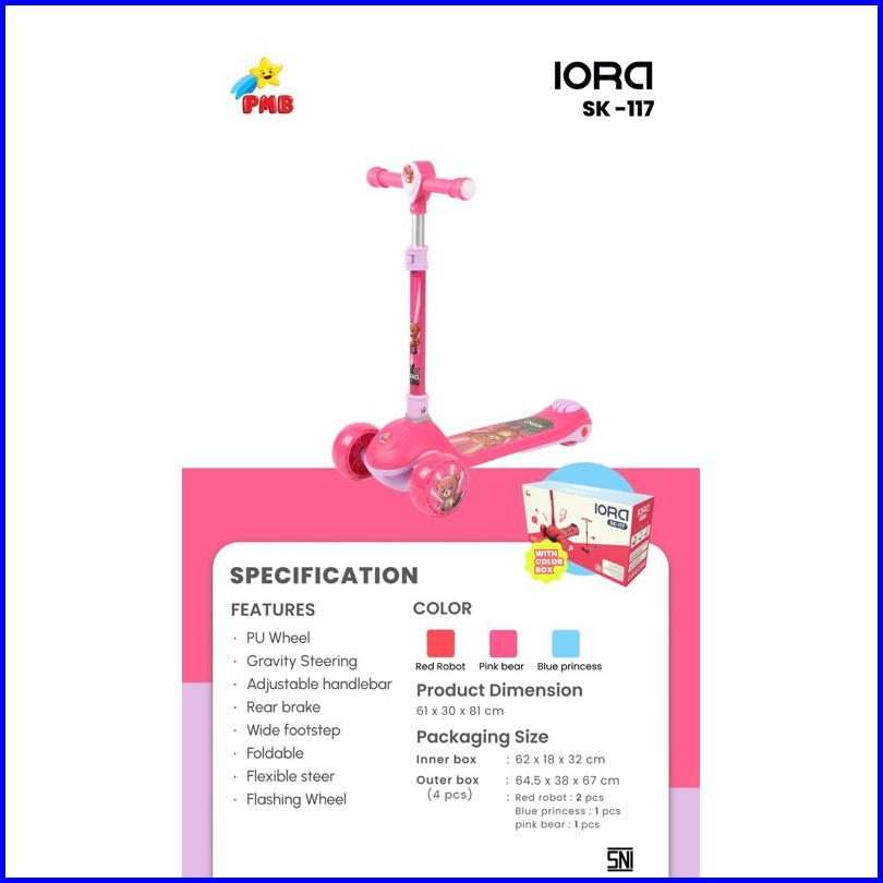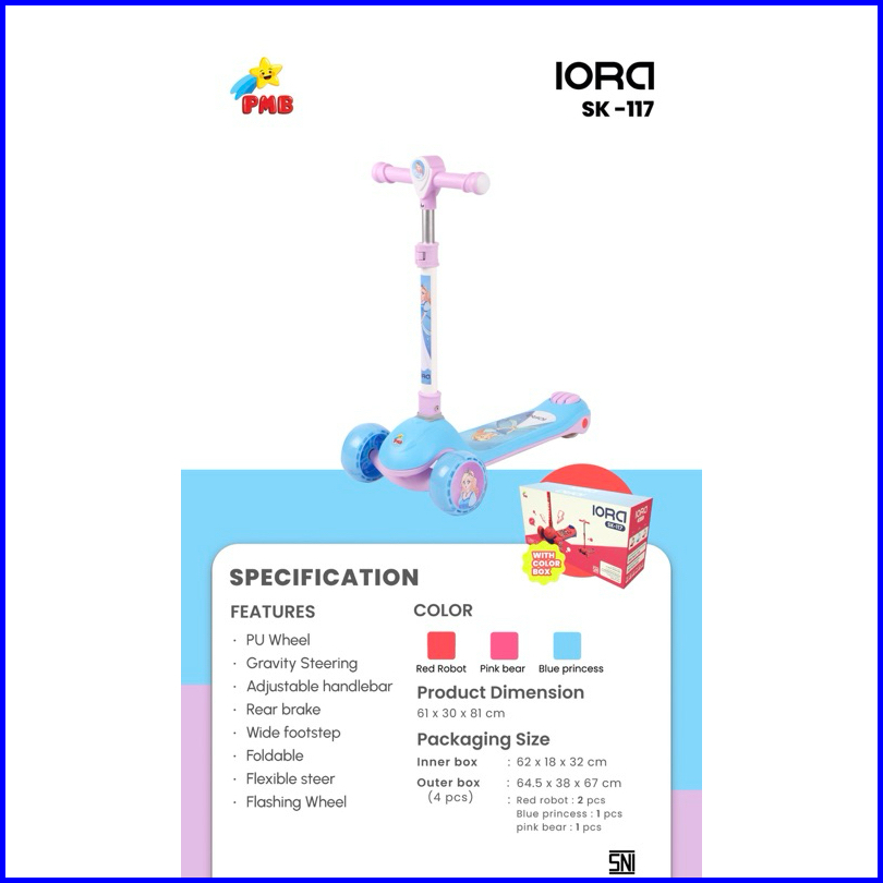 Pmb Skuter Anak Roda 3 Otoped Scooter 3 Roda Skuter Karakter Pmb Sk117