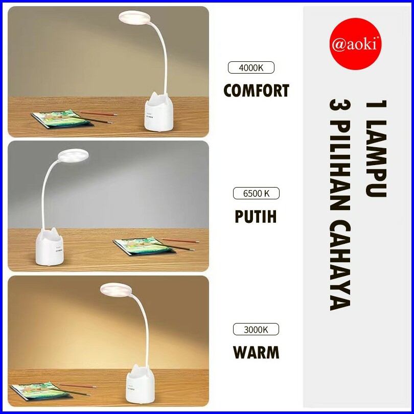 Aoki Lampu Belajar Tricolour Sentuh 3warna Tempat Pulpen Baca Meja Kerja Duduk
