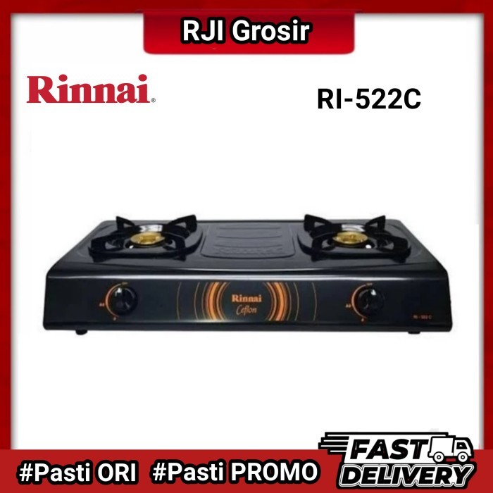 [PRODUK TERMURAH FREE PACKING KAYU ] Rinnai RI-522C / 522CE Kompor Gas 2 Tungku Teflon ri 522 C GARANSI RESMI