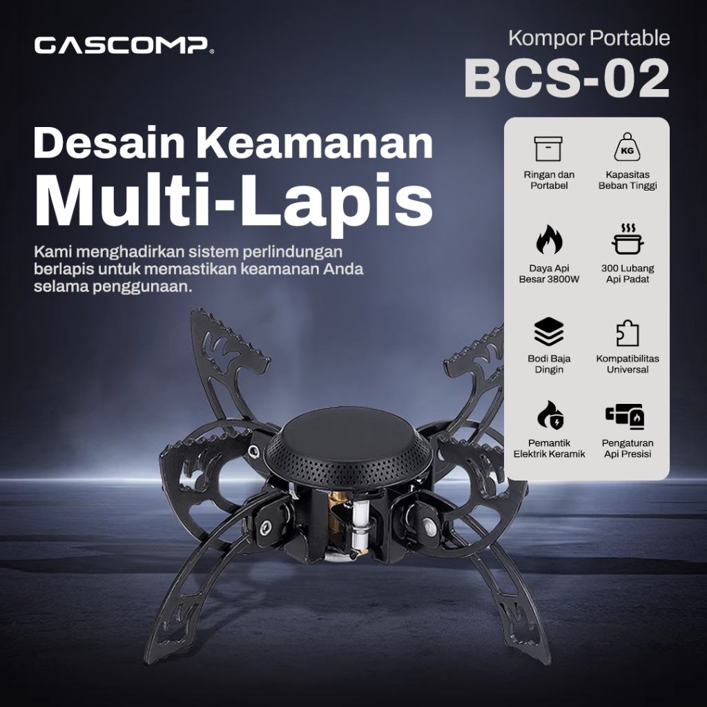 Gascomp Kompor Gas Portable Kompor Camping BCS 02 Kompor Camping Spider Alat Masak Kompor Outdoor Kompor Lipat dan Mudah