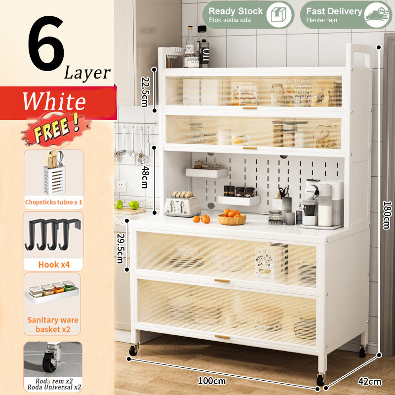 Lemari Dapur Lemari Piring Aluminium Rak Dapur Lemari Dapur Minimalis Besi Serbaguna Lemari Dapur Rak Piring Oven Micro