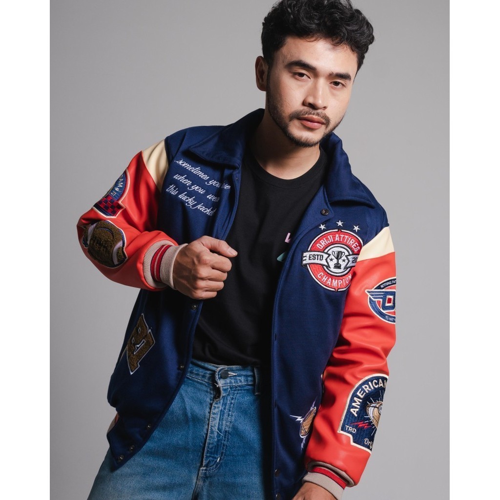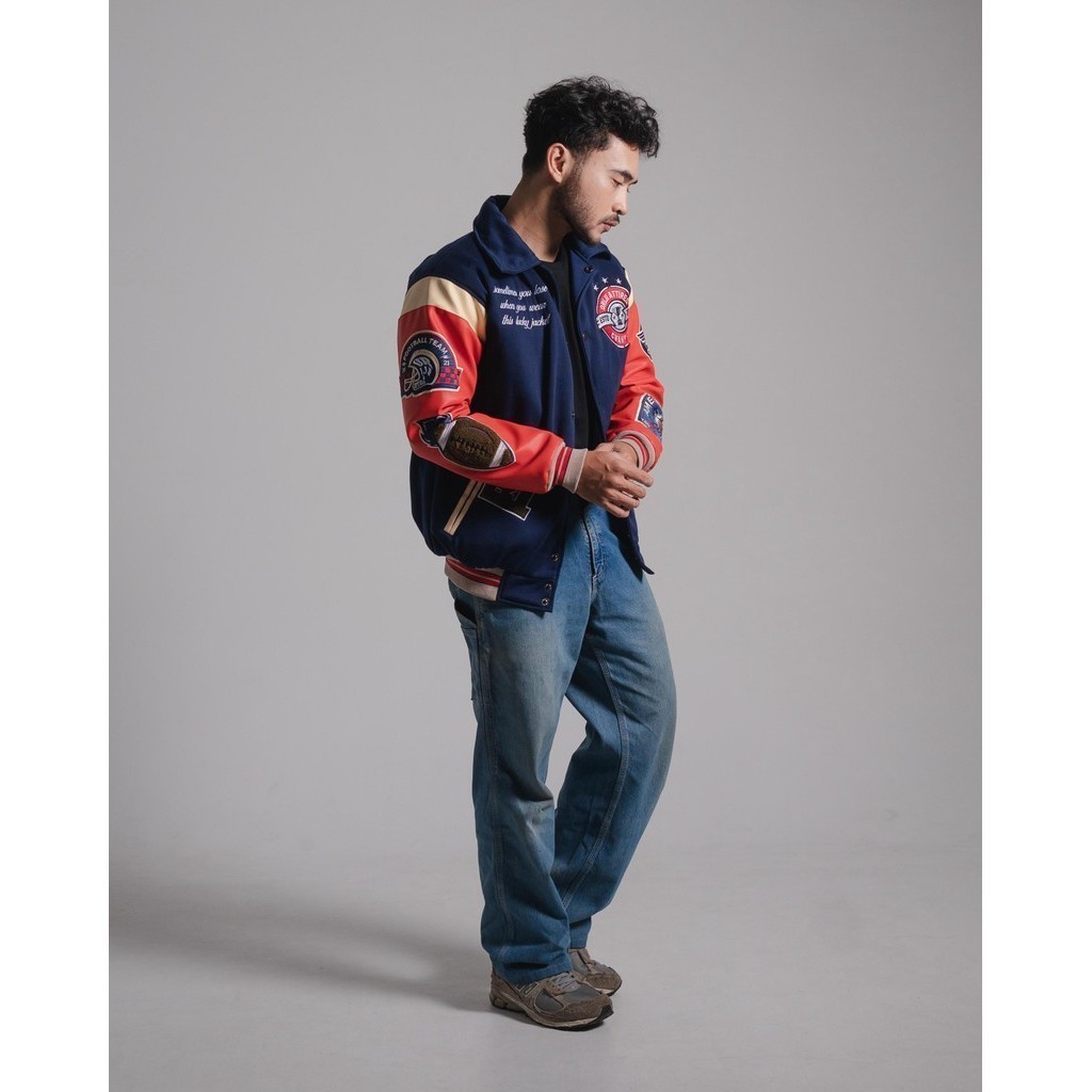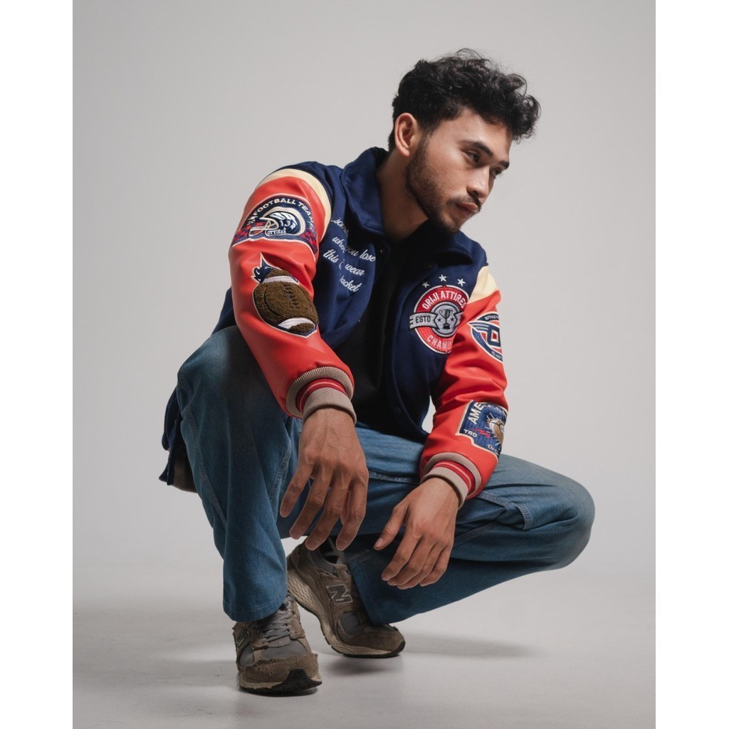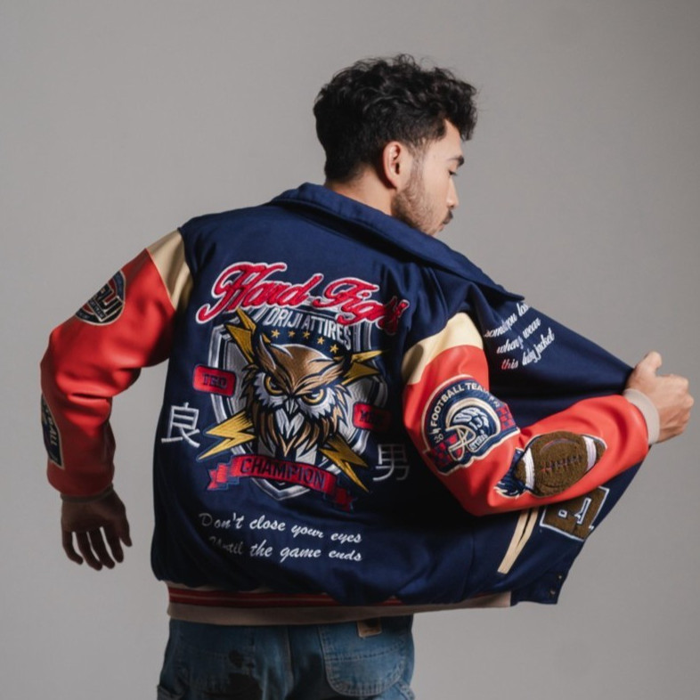 Jaket Varsity Pria Wanita Hard Fight Full Bordir Fleece Kombinasi Kulit Karlit Lengan Panjang M L XL (ORJ-BR013VR)