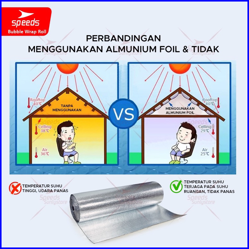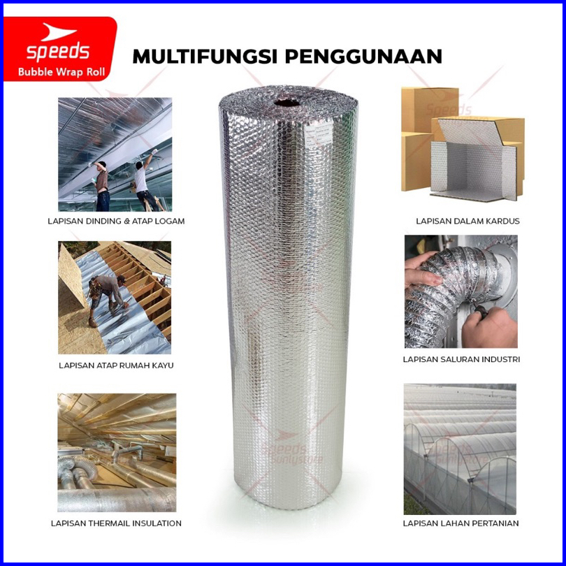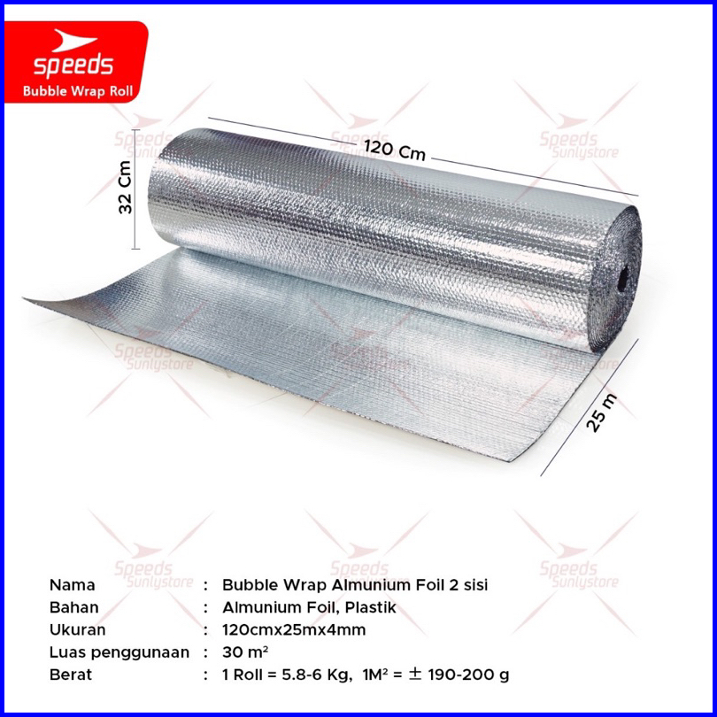 Speeds Aluminium Bubble Foil 120cmx25m Wrap Anti Aluminum Insulator Panas Peredam Panas Atas Insulasi
