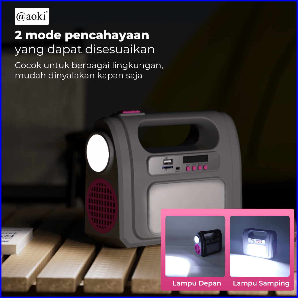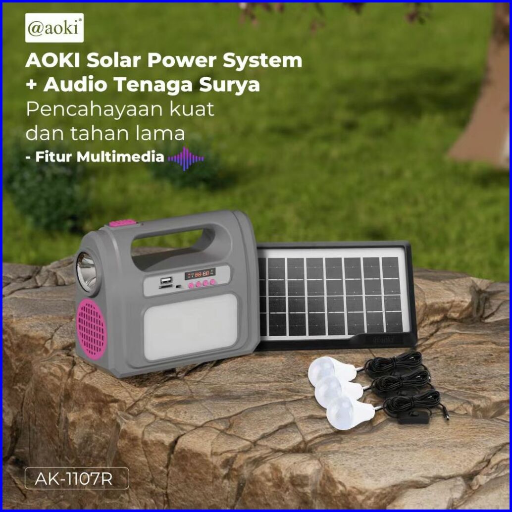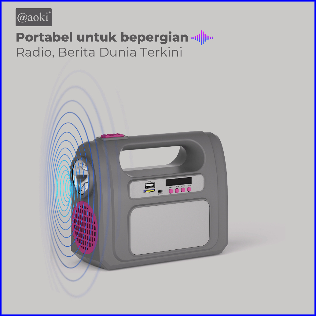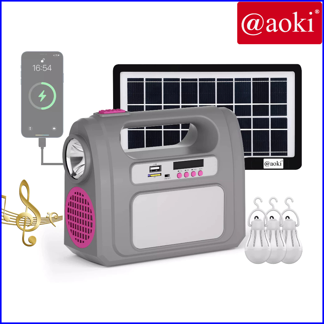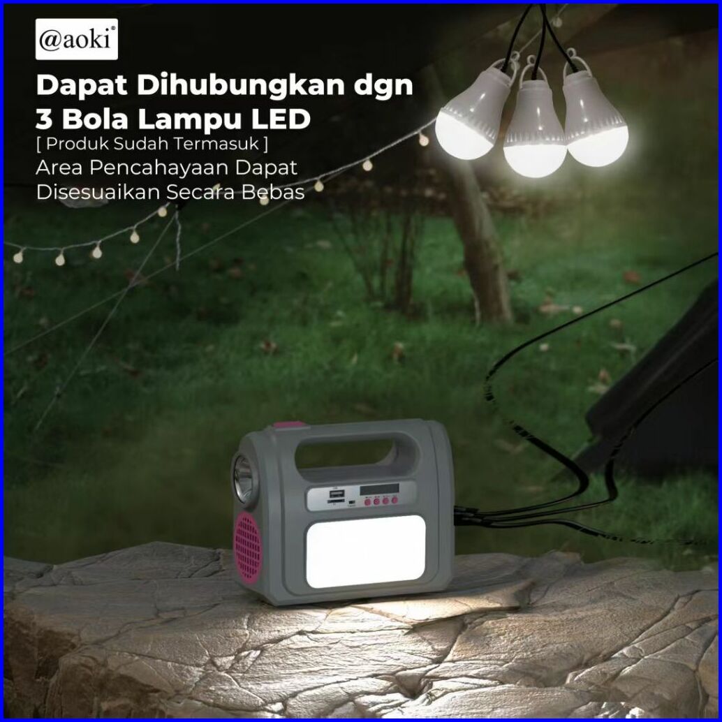Aoki Solar Power System Tenaga Surya Multifungsi Dengan Pemutaran Audio Bluetooth Radio Dan Power Bank
