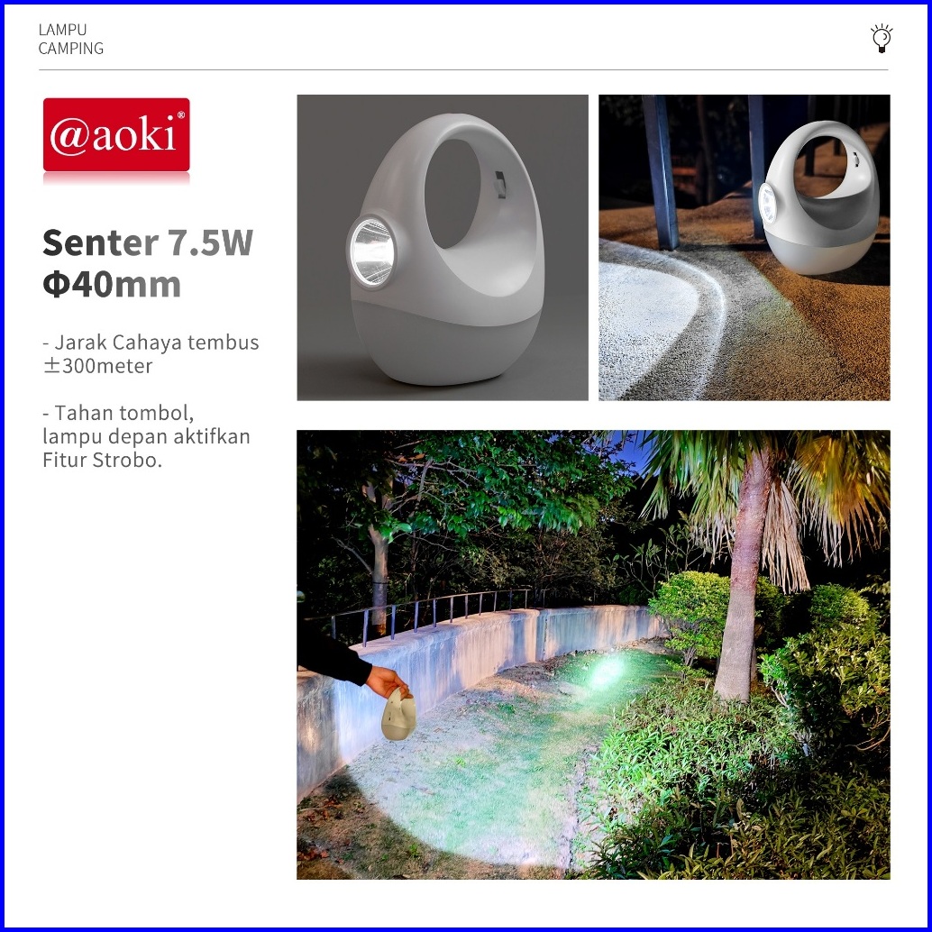 Aoki Lampu Camping Praktis 2400mah Daya Tahan Lama Dual Baterai Senter Dimmer Dapat Digantung