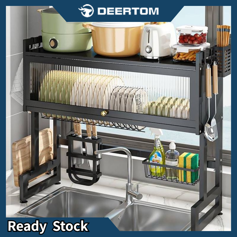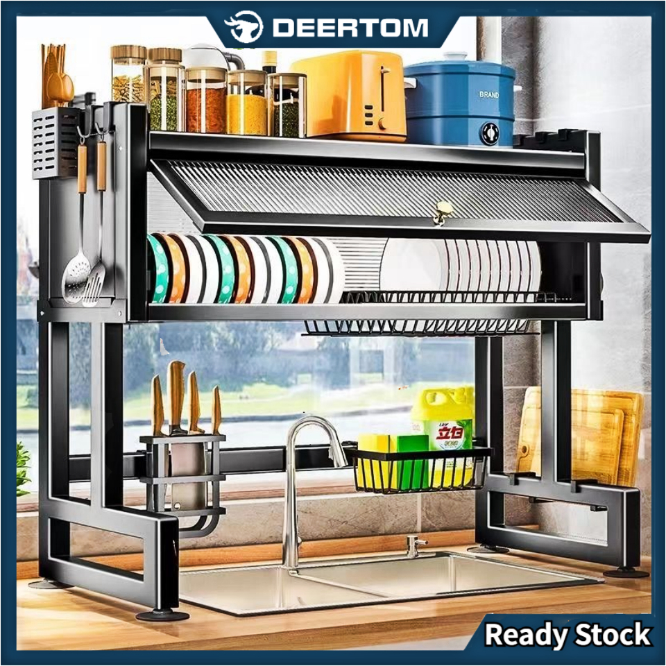 【Pengiriman Dalam 24 Jam】Stainless Steel Rak Cuci Piring Rak Piring Tertutup Kitchen Rak Piring Wastafel Sink Rak Dapu