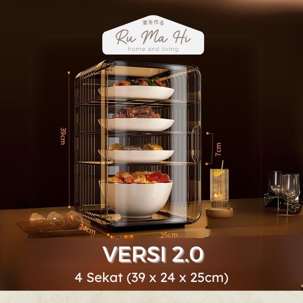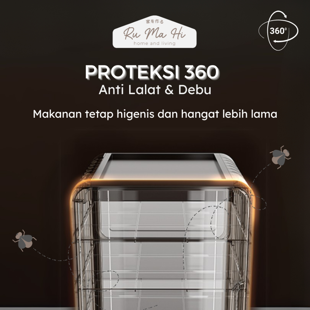 RUMAHI -ASAHI Lemari Penyimpan Lauk Tingkat Penyimpanan Makanan Susun Tudung Saji Lauk Anti Debu Lemari Tudung Saji Maka