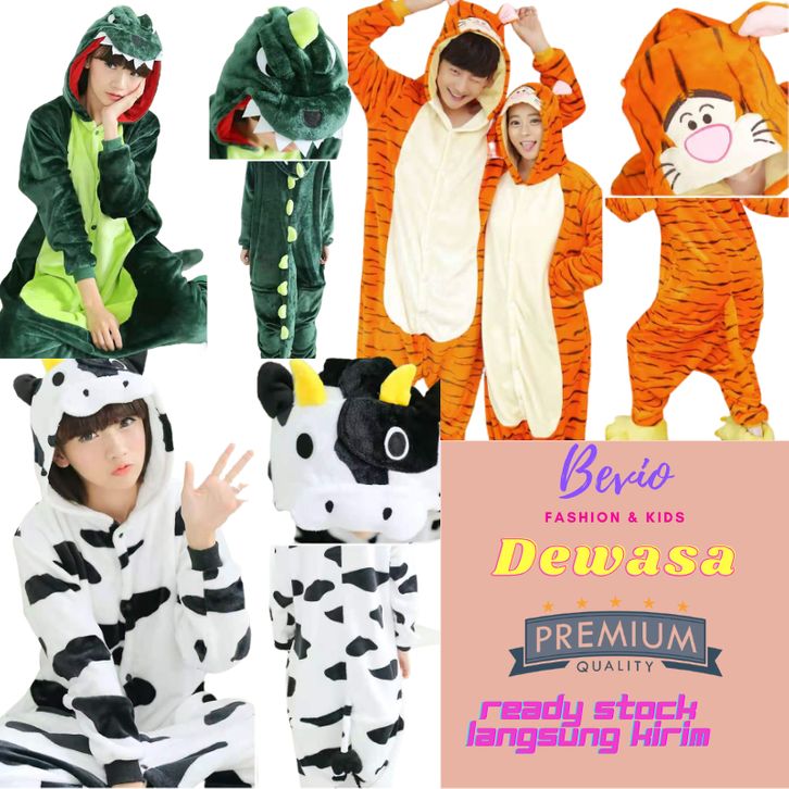 Promo Onesie Dewasa Impor Baju Animal Kostum Cosplay Karakter Binatang Boneka Sapi Macan Lucu Pria Wanita Elegan