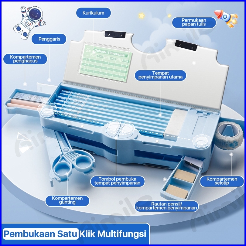 Aimilo Tempat Pensil Multifungsi Kotak Pensil Anak Lengkap Peruncing Gunting Isolasi Penghapus Penggaris Alat Tulis Seko