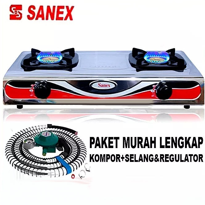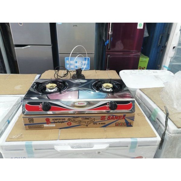 Kompor Gas Stainless Steel Sanex K-608S 2 Tungku Free Selang Paket Caisar SNI