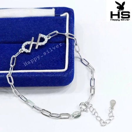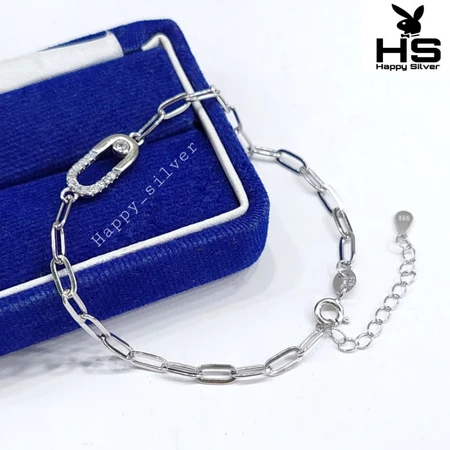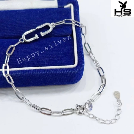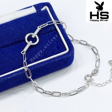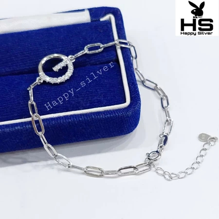 Gelangg Perak Asli Wanita Silver 925 Lapis Ems Putih Rantai Nori Catena Plat Permata - Gelangg Wanita Anti Karat