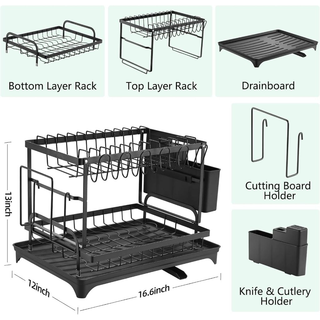 Rak Piring Dapur Stainless Steel 2 Tingkat Pengering Piring Rak Cangkir Rak Mangkuk Piring Dengan Baki Wastafel Dapur De