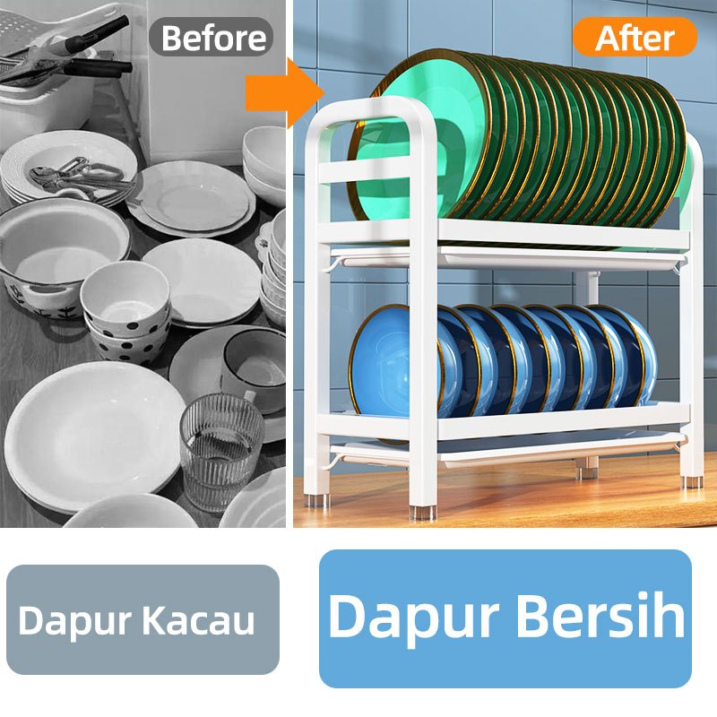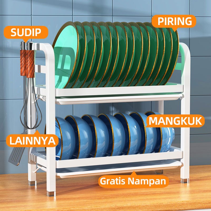 Rak Piring Wastafel Stainless Minimalis Rack Dapur Rak Cuci Peniris Cucian Pengering Piring Estetik 2 Susun Mini Kecil S