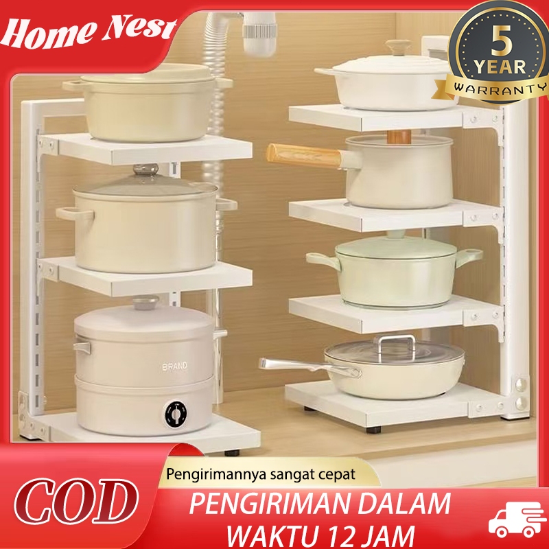 Versatil Adjustable 2-7 Layer Pot Rack - Durable Carbon Steel, Snap-on Design for Easy Kitchen Orga