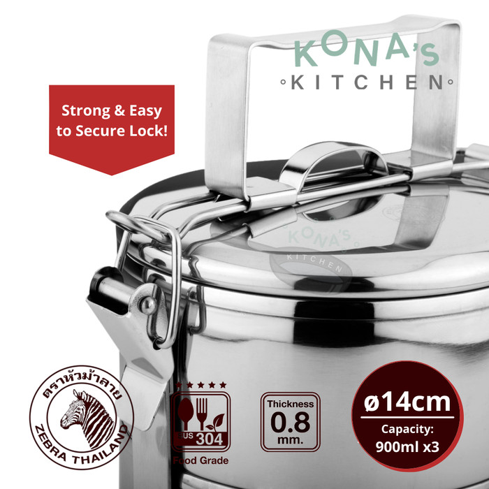 Zebra Food Carrier 14x3 (150143) / Kotak Bekal Lunch Box Rantang Mananan Stainless 14cm Tiga Susun