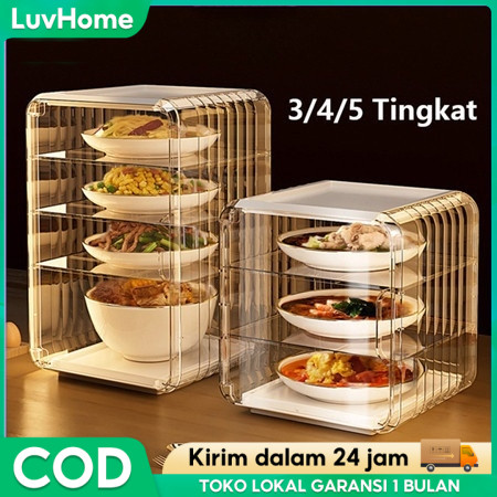 Lemari Penyimpanan Makanan Multifungsi TUDUNG SAJI RAK MAKANAN BAHAN AKRILIK PREMIUM 3/4/5 Susun Penutup Sayur Tahan Deb