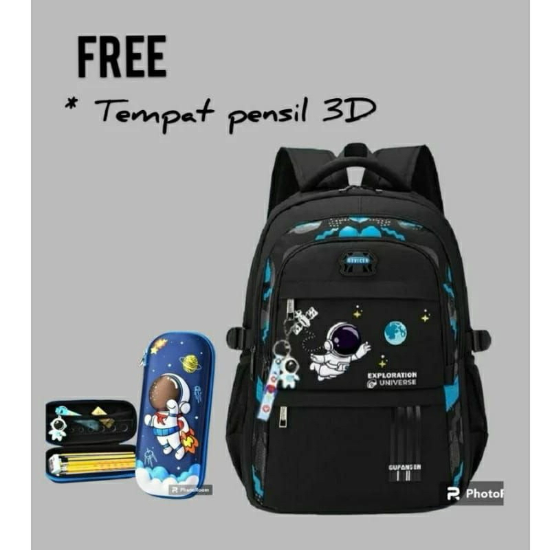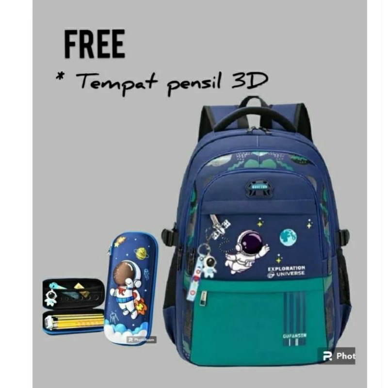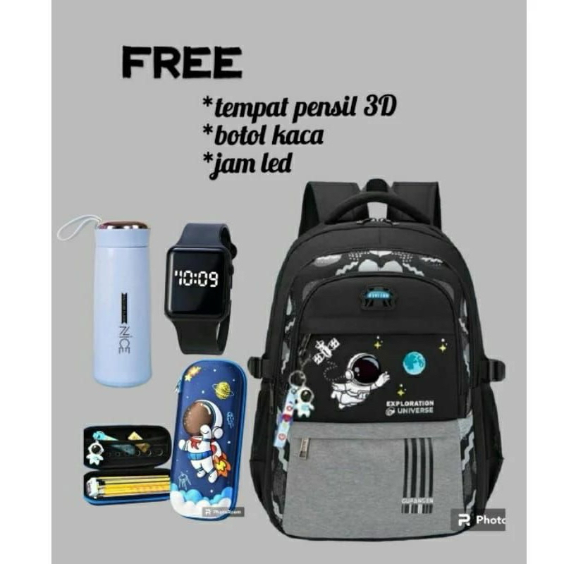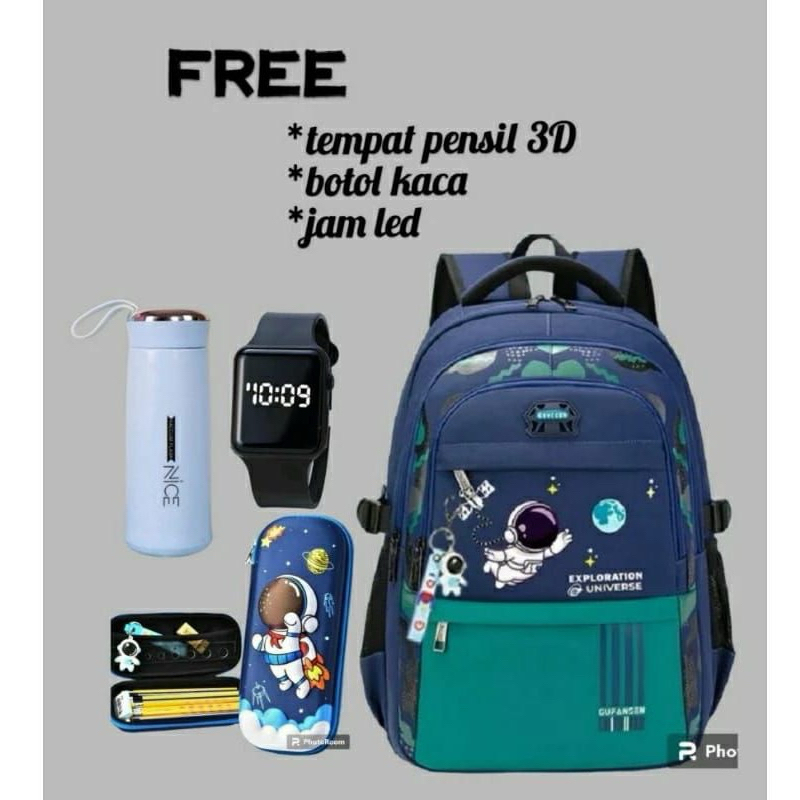 (FLASH SALE) PAKET BANYAK BONUSNYA 4IN1 Tas Ransel Anak Laki Laki SEKOLAH SD SMP MOTIF ASTRONOT