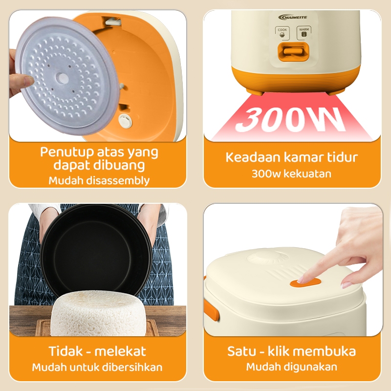 MAIMEITE Magic Com mini 1.6L Portable Travel version student version Oranye Multifungsi