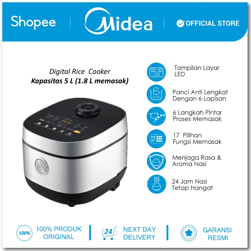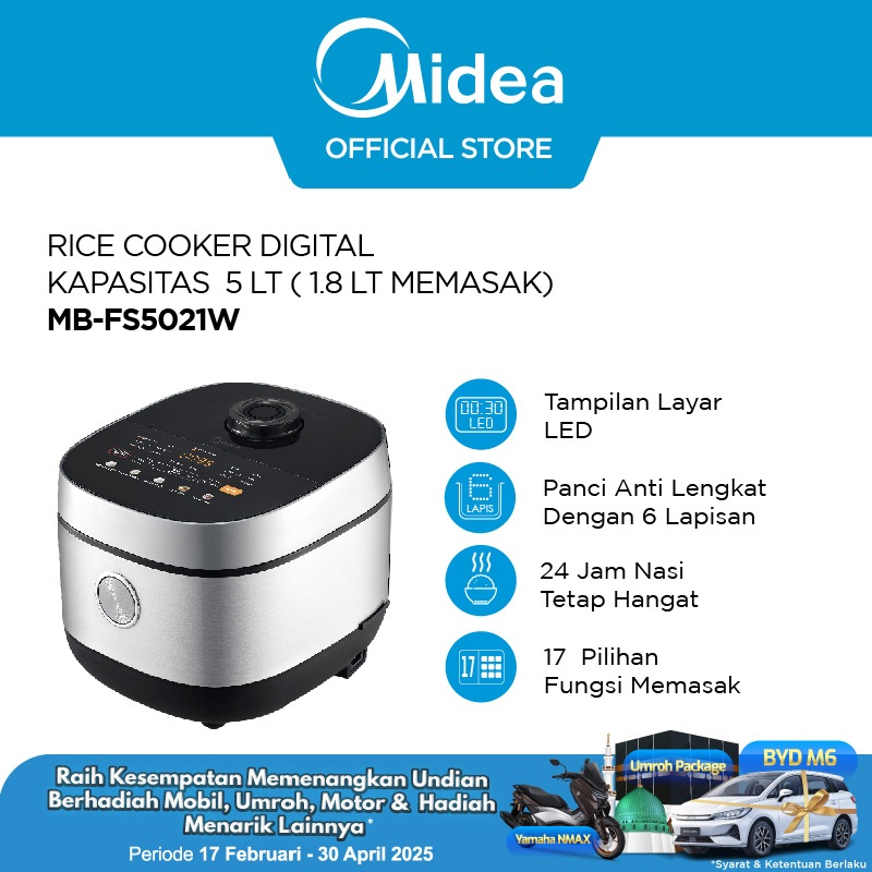 [PRODUK TERBARU] Midea Digital Rice Cooker 1.8L - MB-FS5021W - Non Stick Coating