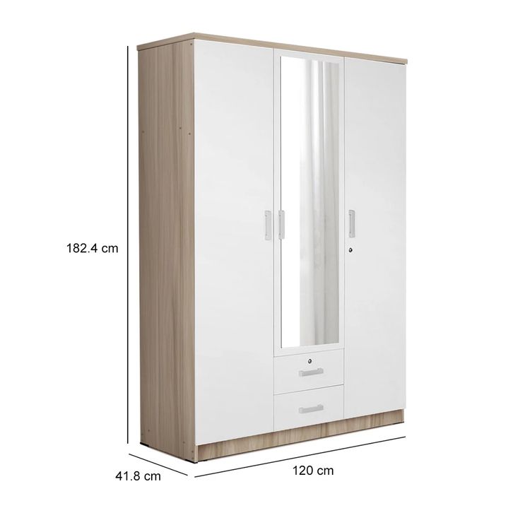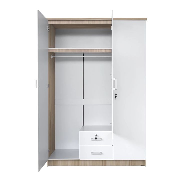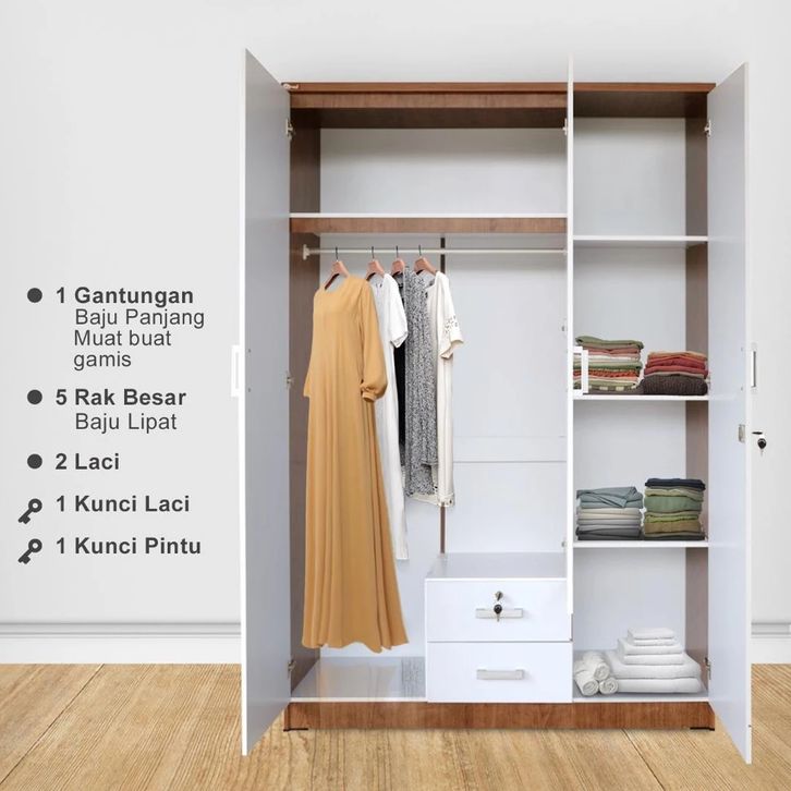 KIRANA Arizona - Lemari Pakaian Kayu Wardrobe 3 Pintu Arizona Putih Coklat Modern Minimalis Wardrobe Wanaka 3 Pintu