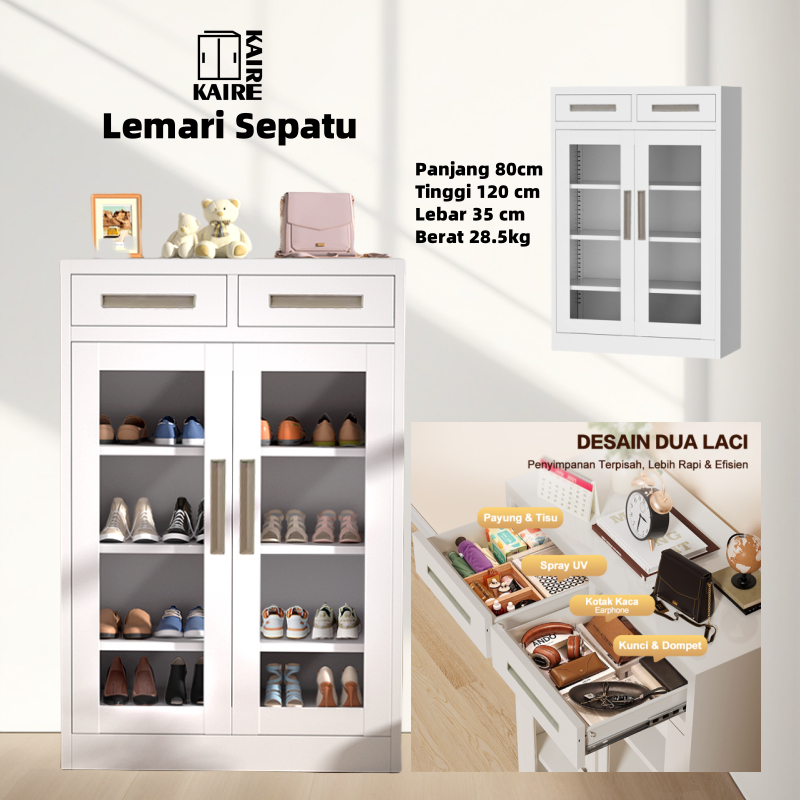 KAIRE Diskon Lemari Sepatu Besi Pintu Ganda 80cm