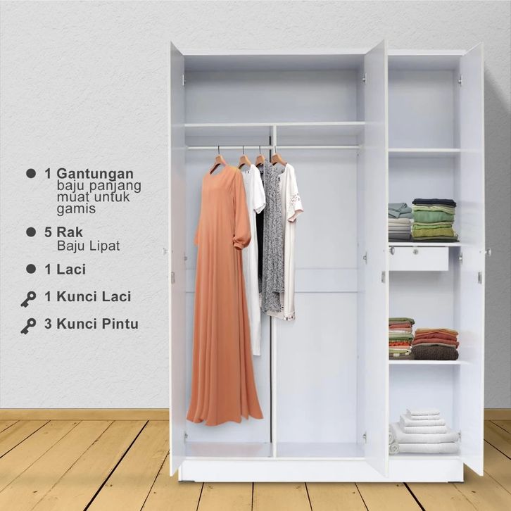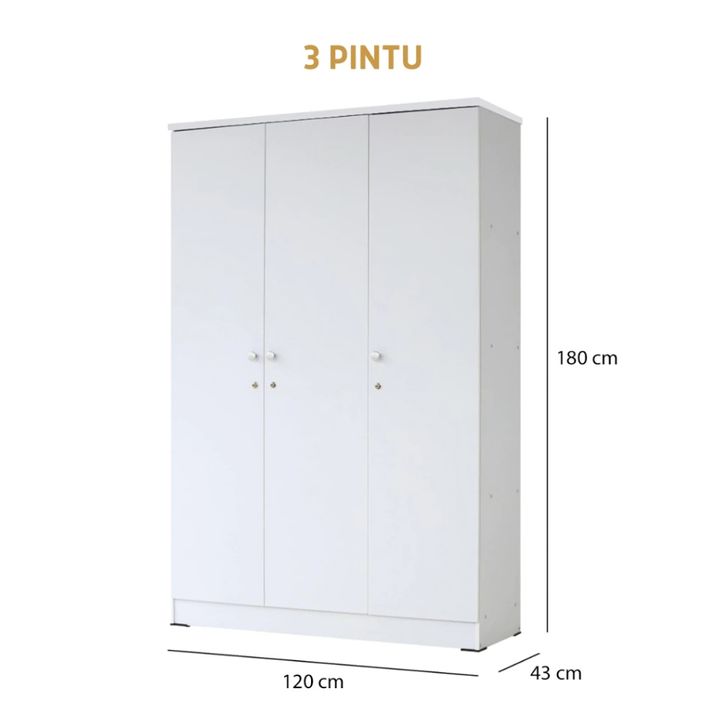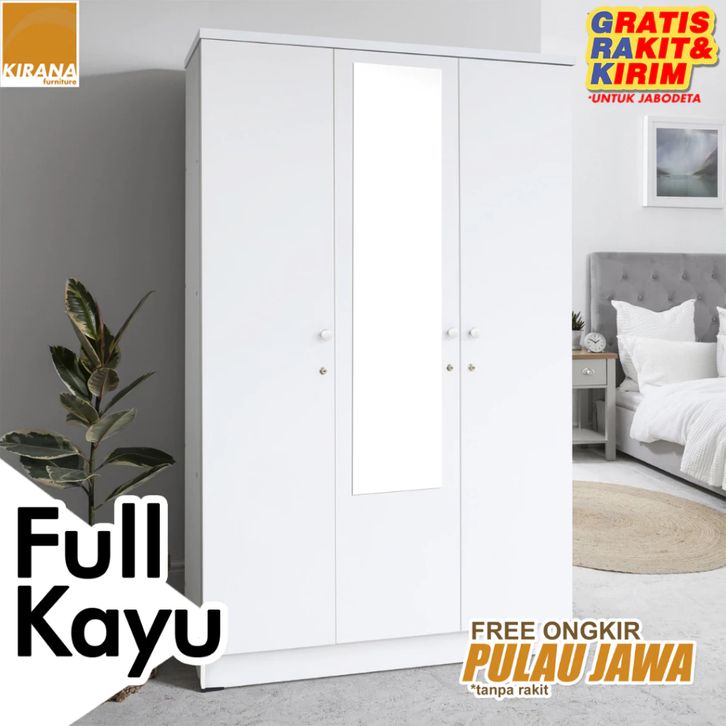 KIRANA Boston - Lemari Pakaian Kayu Wardrobe Putih Modern Minimalis