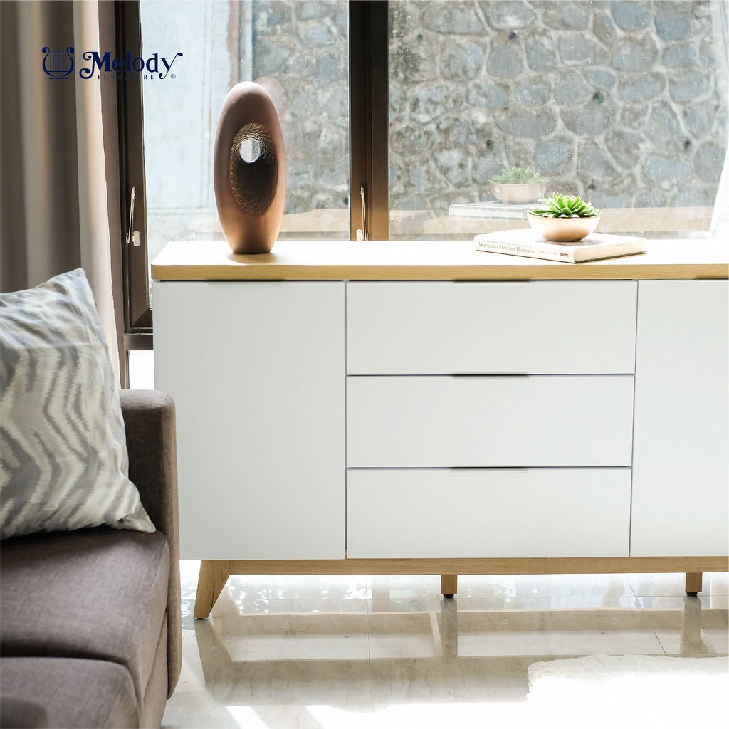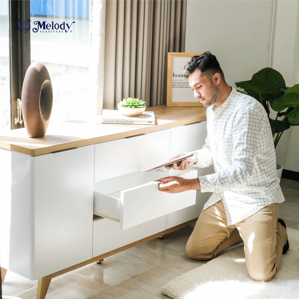 Melody Furniture - Buffet Lemari Laci Ruang Tamu Serbaguna - Libre Sideboard 180 cm - White