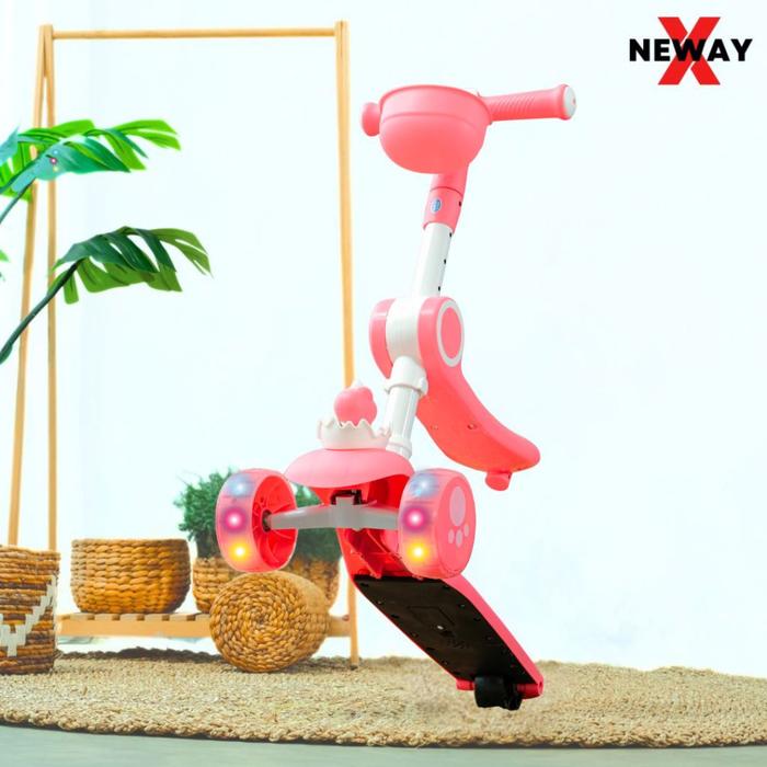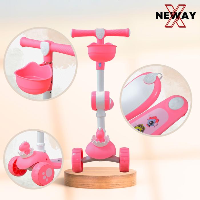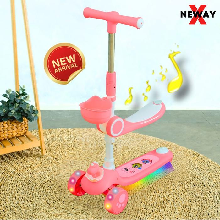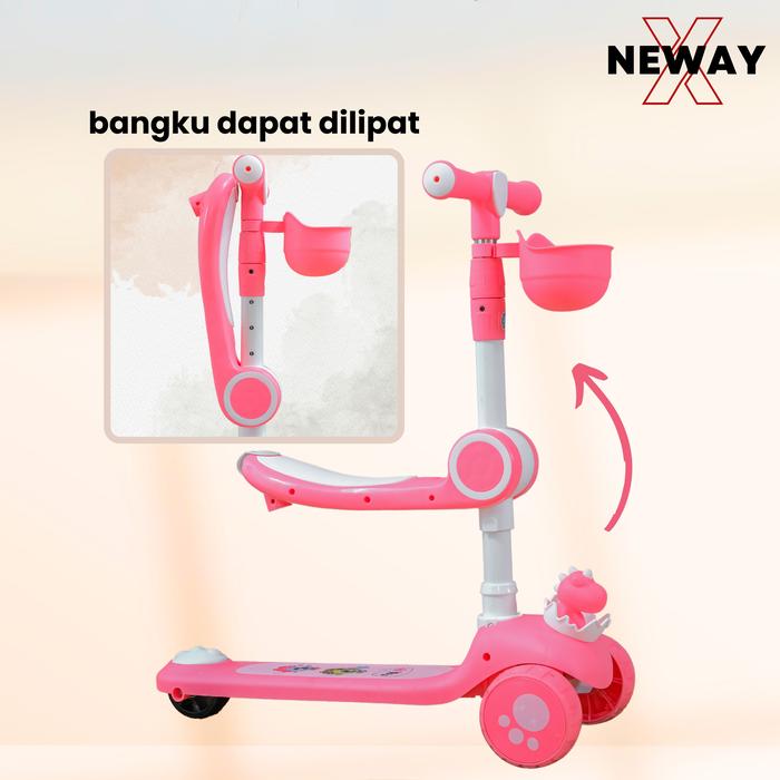 Scooter Mainan Anak 5 TAHUN Telur Bayi Dino 2 in 1 Skuter Lipat Roda Tiga Otoped Lampu Musik Rem Edukasi