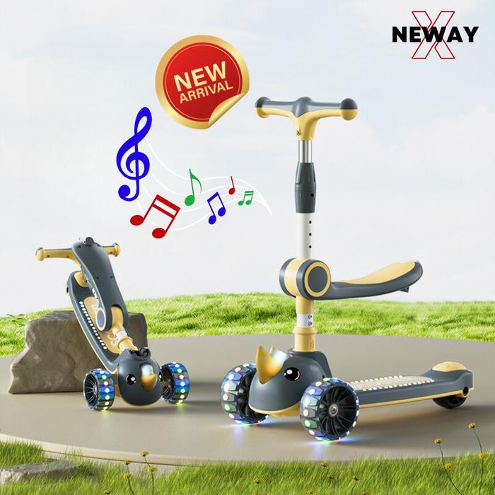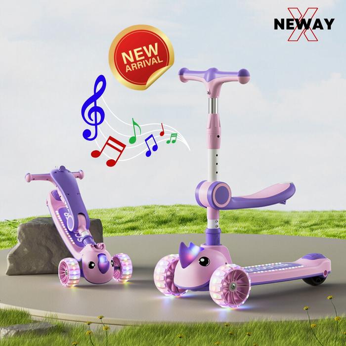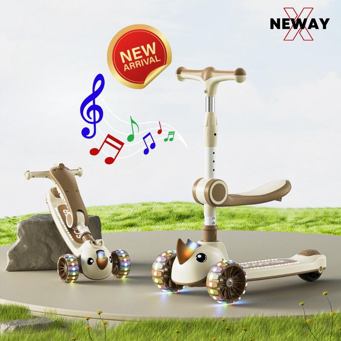 sluter Mainan Anak usia 5 tahun karakter Badak 2 in 1 Skuter Lipat Roda Tiga Otoped Lampu Musik Rem Edukasi Anak Model