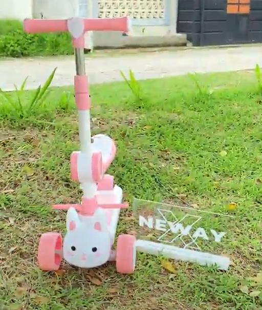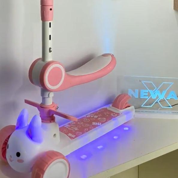 Scooter Anak usia 5 tahun karakter Kelinci 2 in 1 Skuter Lipat Roda Tiga Bangku Lampu Musik Rem Edukasi Anak Model
