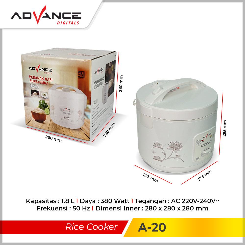 Advance A20 Rice Cooker Alat Penanak Nasi Kapasitas 1.8Liter Daya 380 Watt Garansi Resmi 1 Tahun