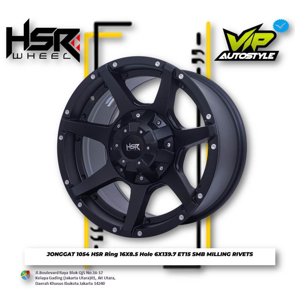 Pelek Velg Offroad Ring 16 Type HSR JONGGAT 1054 HSR R16 Lebar 8,5 Hole Pcd 6x139,7 ET 15 Black Isuzu Phanter Ford Evere