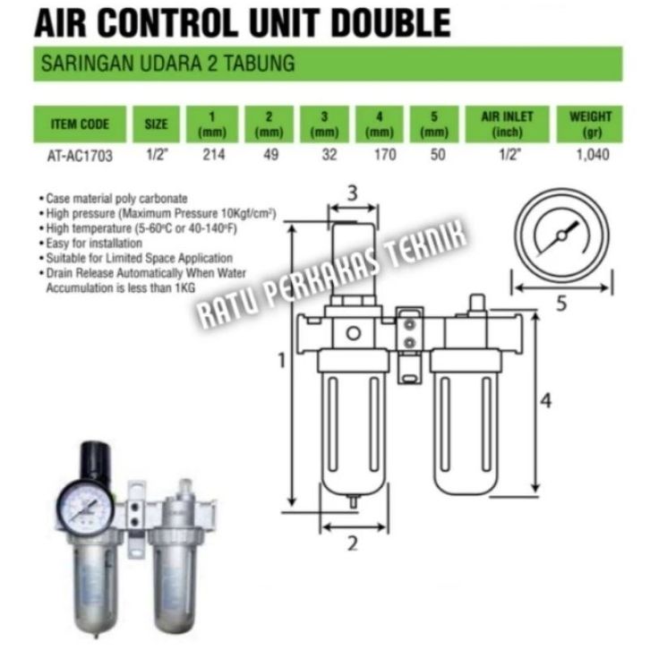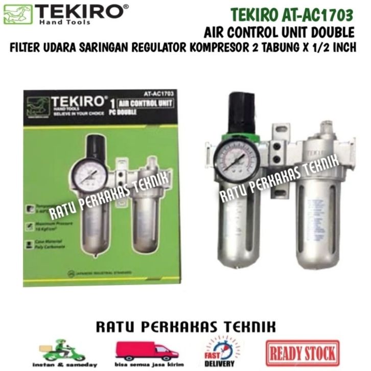 Tekiro Filter Udara 2 Tabung Saringan Kompresor Regulator Kontrol Angin AT-AC1703 Double Air Control Unit