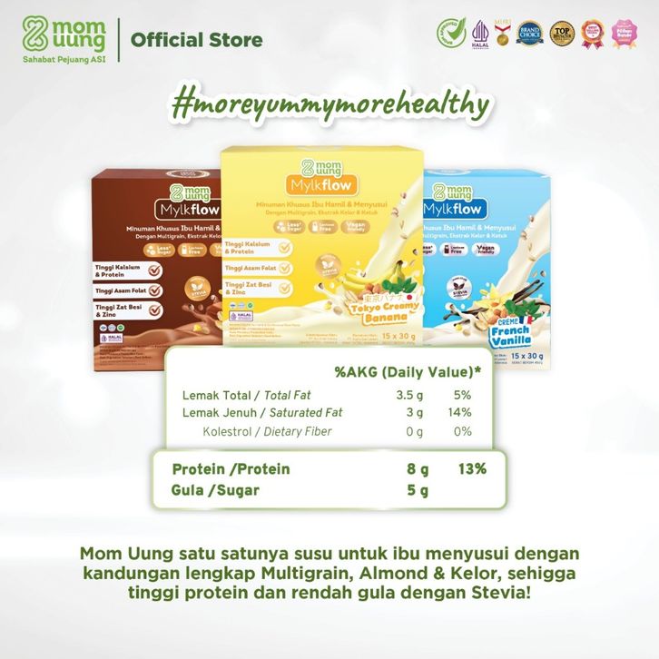 ISI LEBIH BANYAK Mom Uung NEW Susu Mylkflow 15 Sachet Belgian Choco French Vanilla Tokyo Creamy Banana ASI