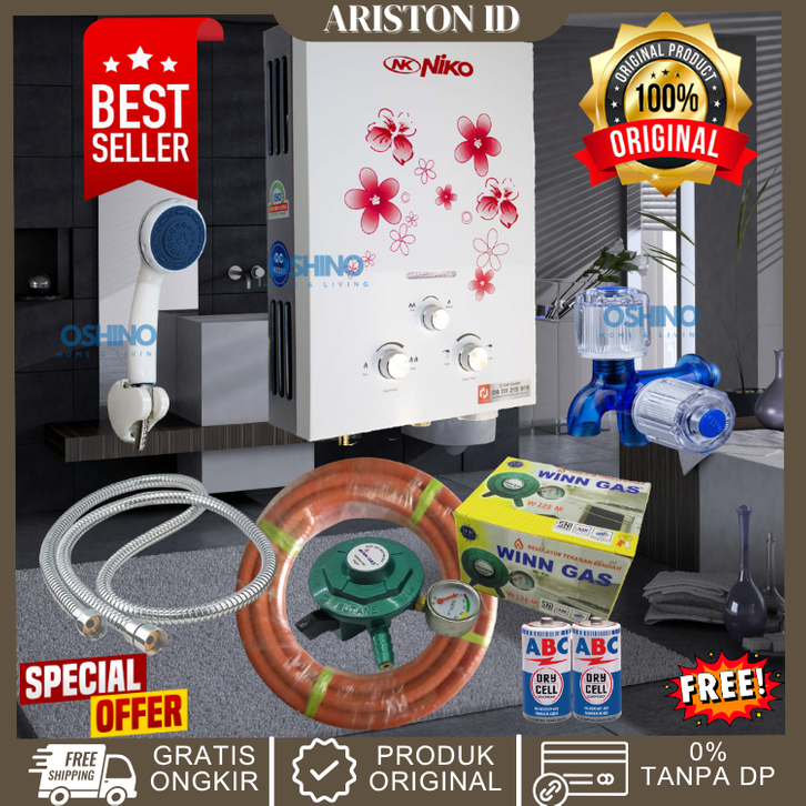 [Mall] WATER HEATER GAS PEMANAS AIR PANAS KAMAR MANDI MEREK NIKO LED KOMPLIT SATU SET WARNA HITAM SIAP PAKAI TERLARIS