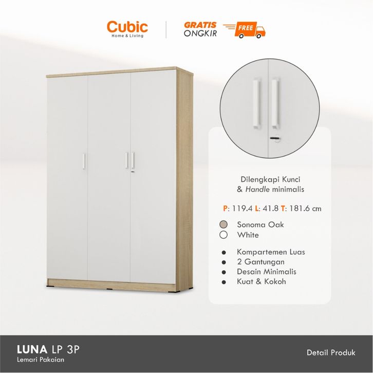 Cubic Lemari Pakaian Minimalis / Wardrobe Baju 3 Pintu