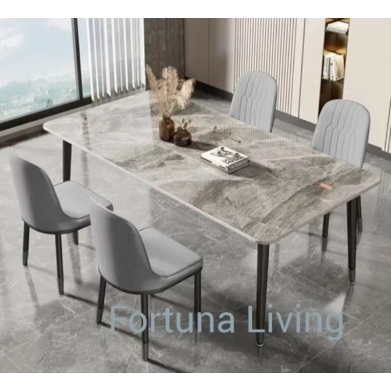 Meja Makan Premium Abu 4 kursi free ongkir termasuk packing kayu