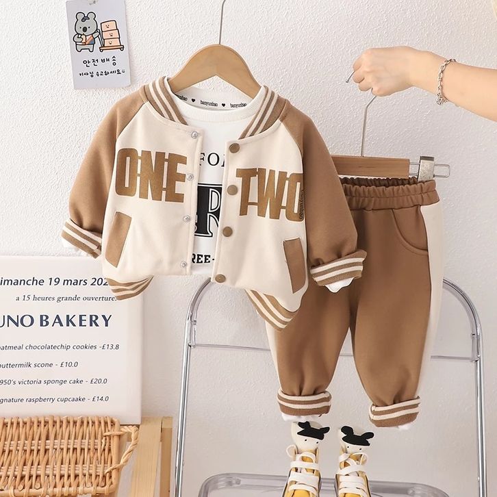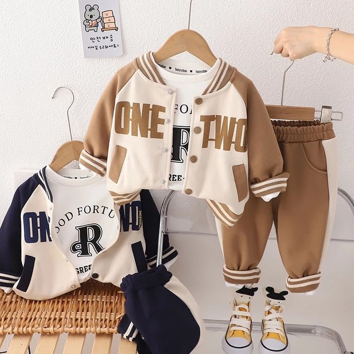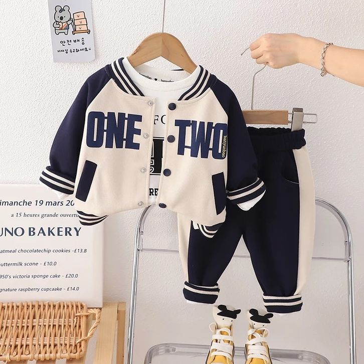 Setelan Jaket 3pcs Anak Laki Laki Import Jaket Baseball Motif Tulisan One Two Anak Cowok Impor Kaos Anak Lengan Panjang