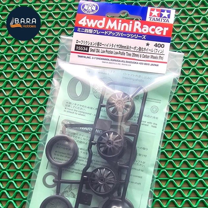 Tamiya 15534 FIN Carbon Wheels - Low Friction Low Profile Tire 26mm - Medium - Original