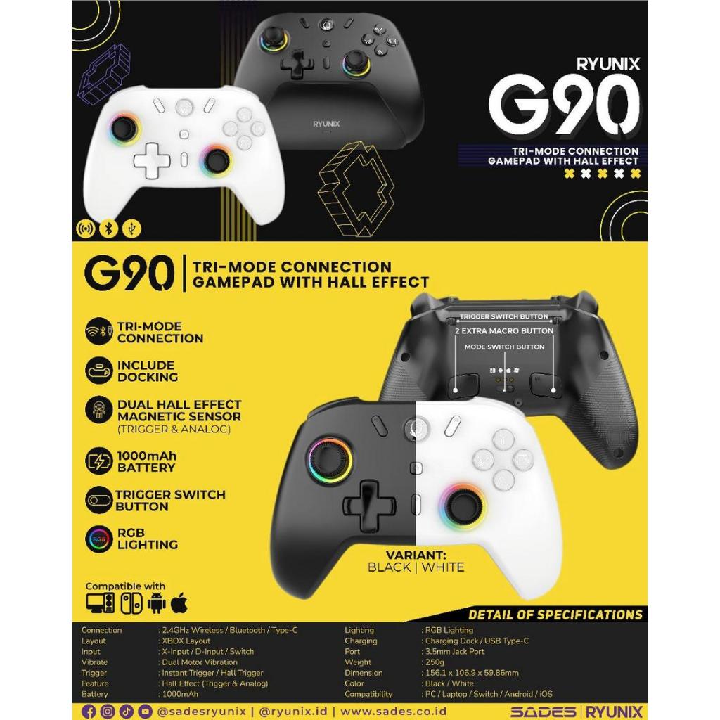 Sades Ryunix G90 / G-90 Gamepad Joystick Gaming Hall Effect Trigger With Docking Charger