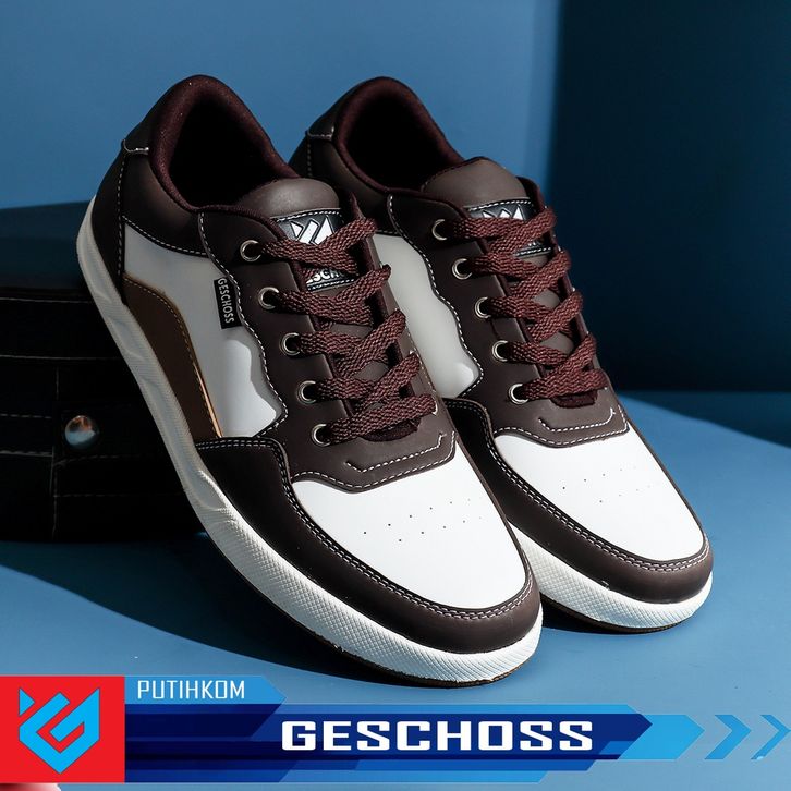 NEW READY STOK Sepatu Sneakers Pria G7834 Putih Kombinasi Brand Geschoaa Sepatu Kets Kuliah Kerja terbaru Puith Coklat