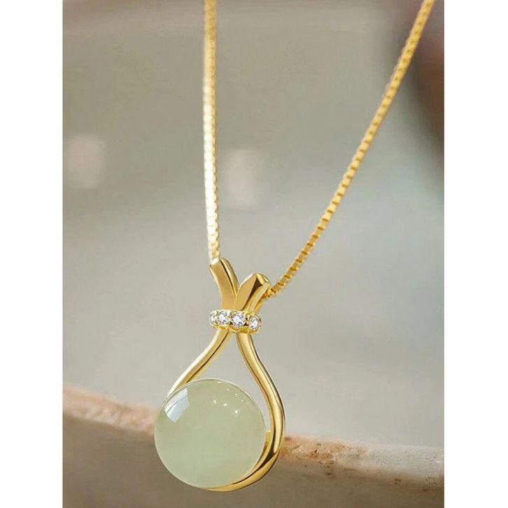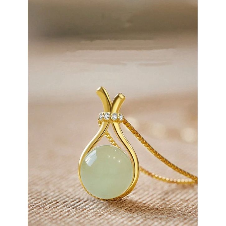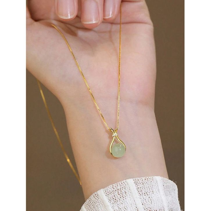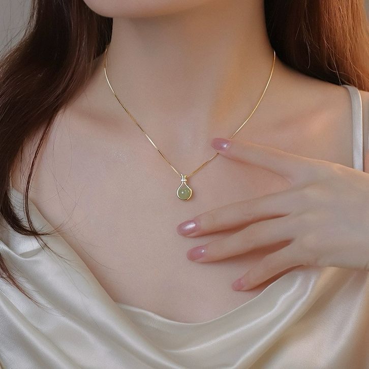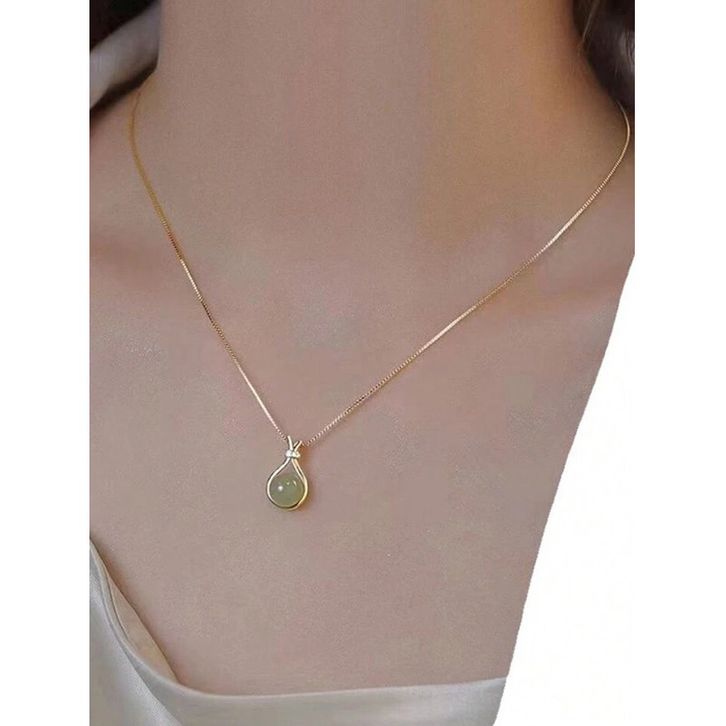 Kalung Wanita Titanium Gold Liontin Batu Giok Hijau
