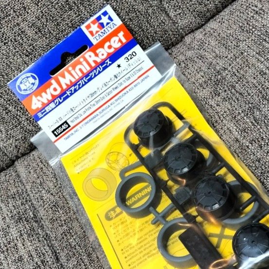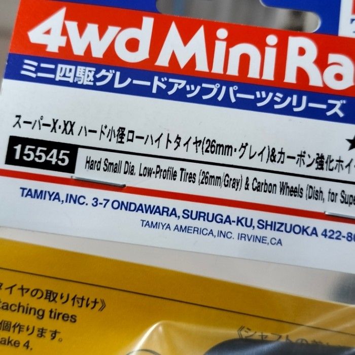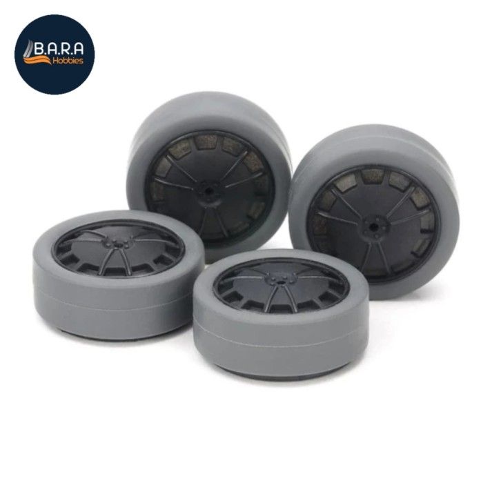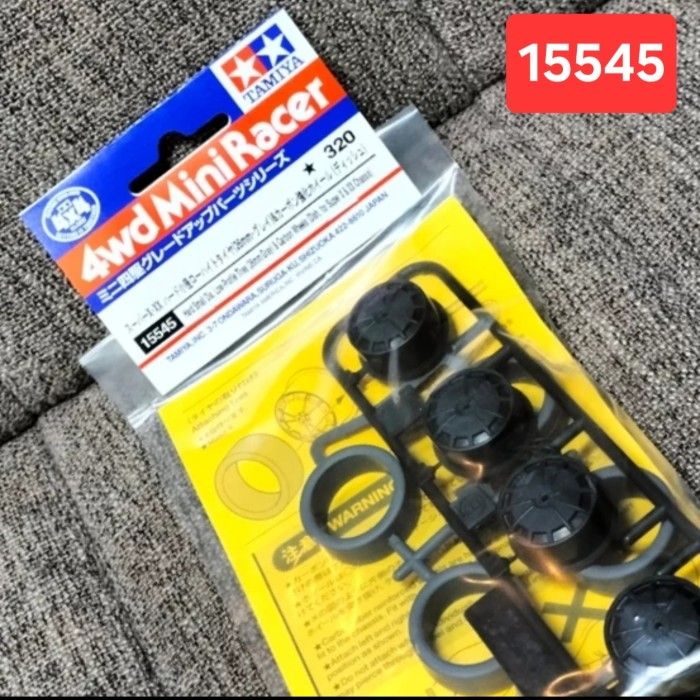 Tamiya 15545 Dish Carbon Wheels + LP Tires Grey Hard + Medium 26mm + Original
