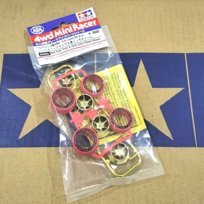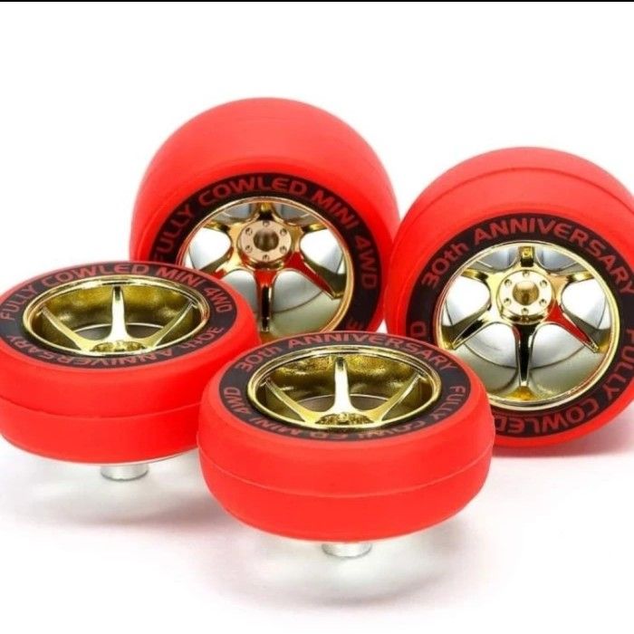 Tamiya 95665 Red Tires Slick Fully Cowled 30th - Gold Color Plated Wheels Hard - Original