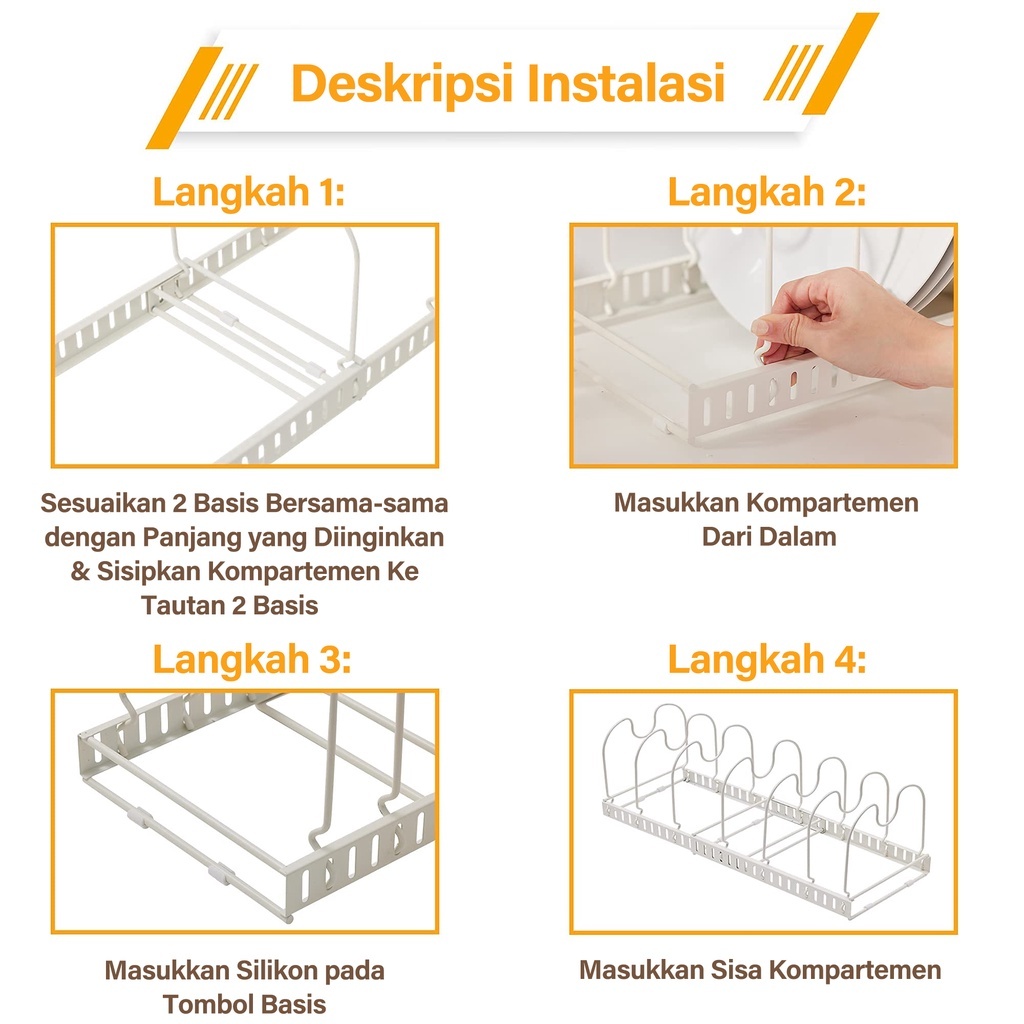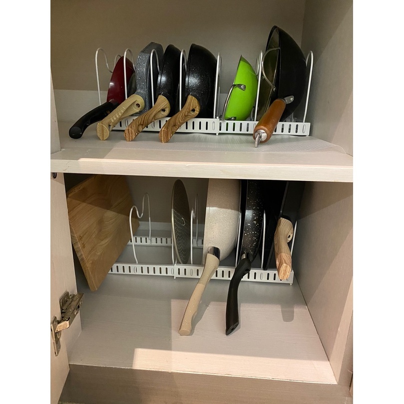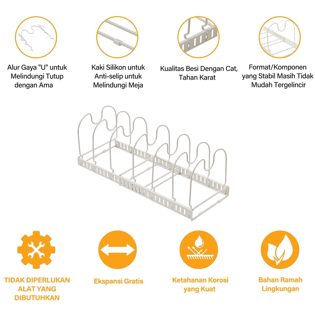 Rak Penyimpanan Dapur Dengan Rak Penutup Panci Yang Dapat Diperluas dan Multifungsi Untuk Peralatan Masak Besi Rumah Tan