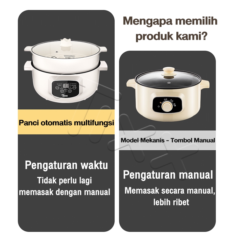TIXX 4L Panci Elektrik LED Smart Serbaguna 2 in 1 Panci Listrik / Multifunctional Electric Cooker Free Steamer / Panci E