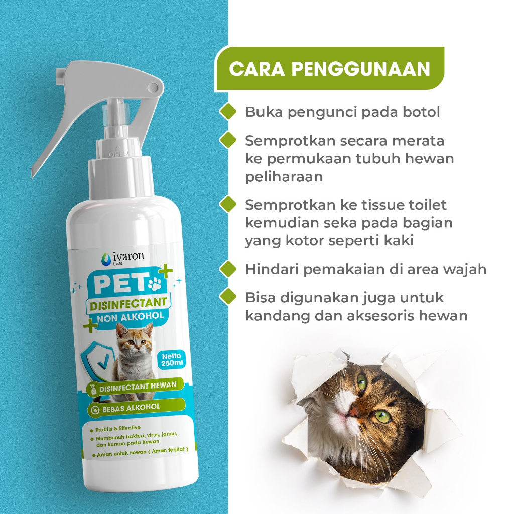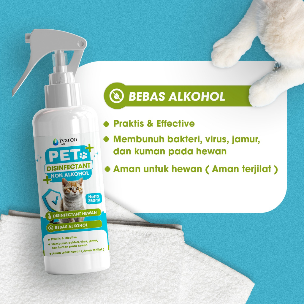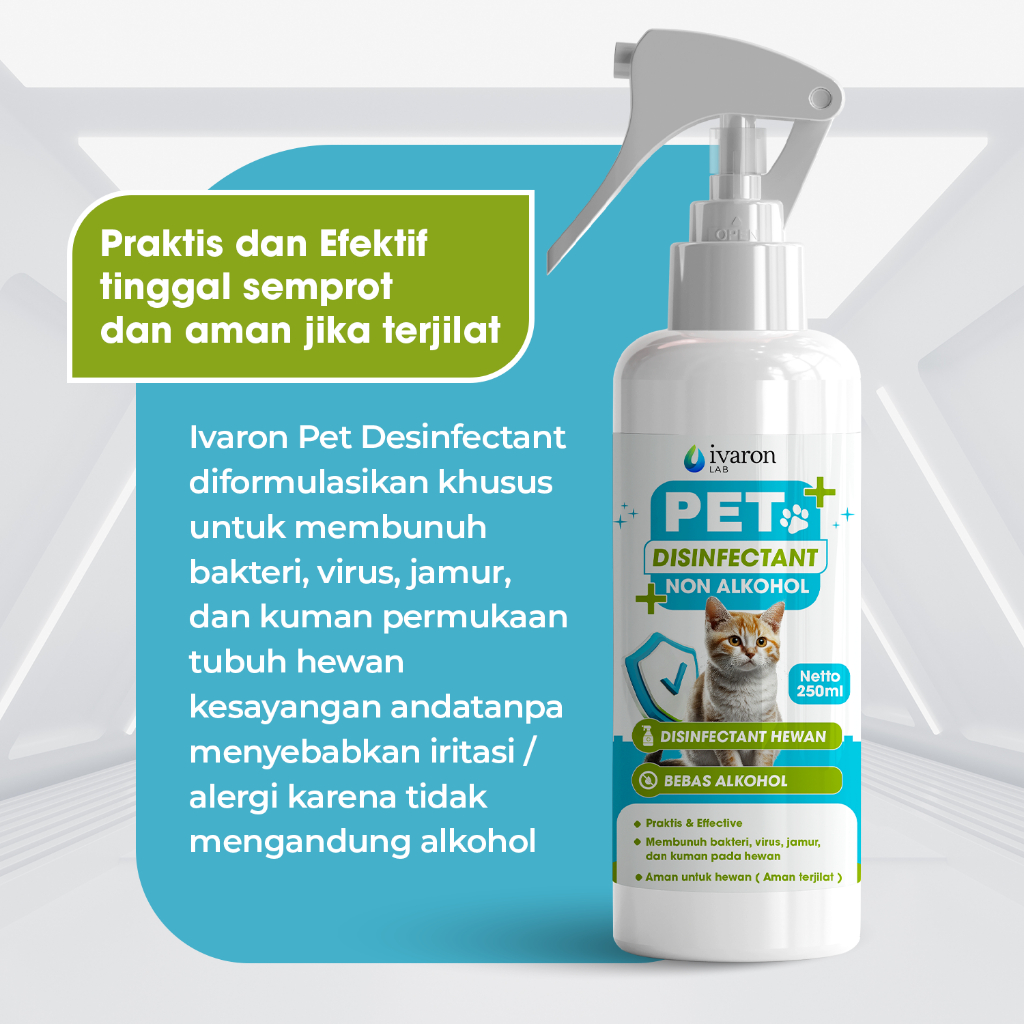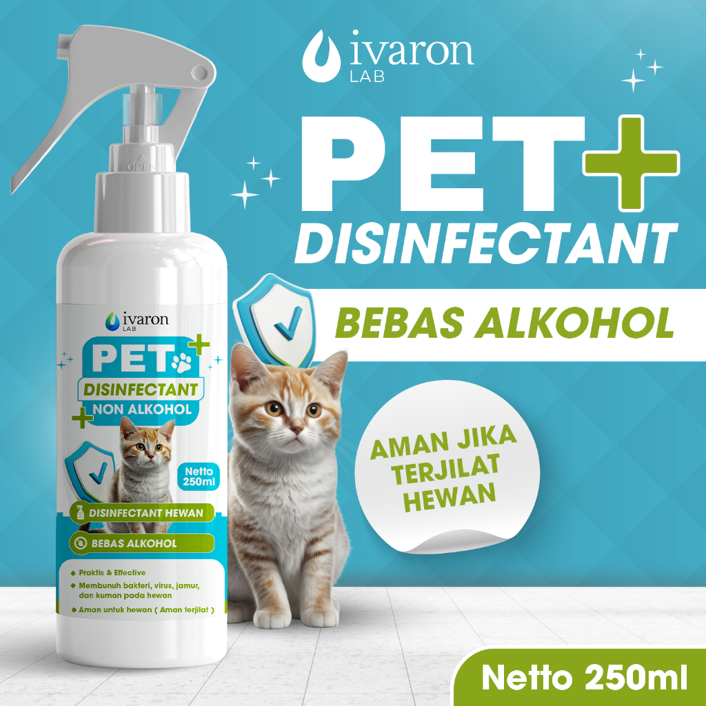 DISINFEKTAN HEWAN PELIHARAAN SPRAY 250ML NON ALKOHOL / ANTI VIRUS BAKTERI JAMUR KUTU - AMAN TERJILAT