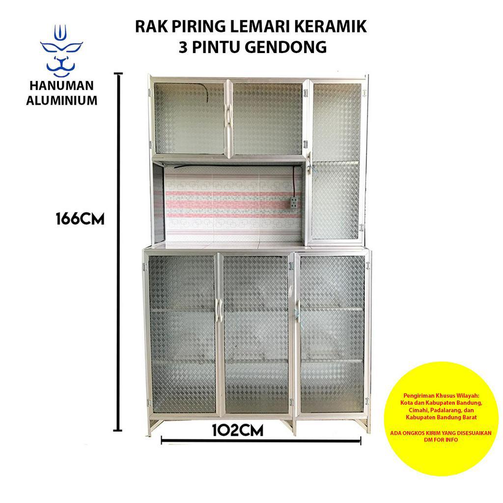 HANUMAN ALUMINIUM Rak Piring Lemari Keramik 3 Pintu Gendong