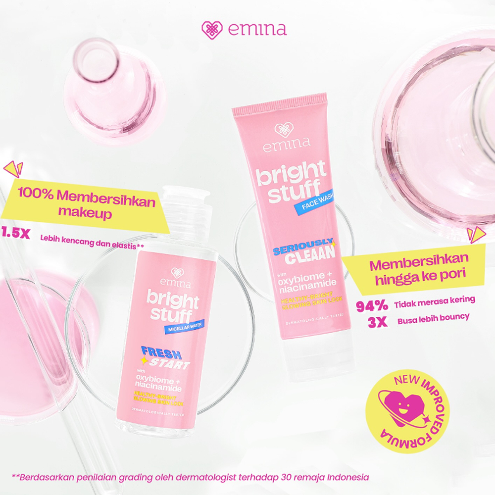 EMINA Bright Stuff Series | ne Prone | Fe Wash Scrub Whip Foam | Toner | Moisturizer | Tone Up | Serum Wajah