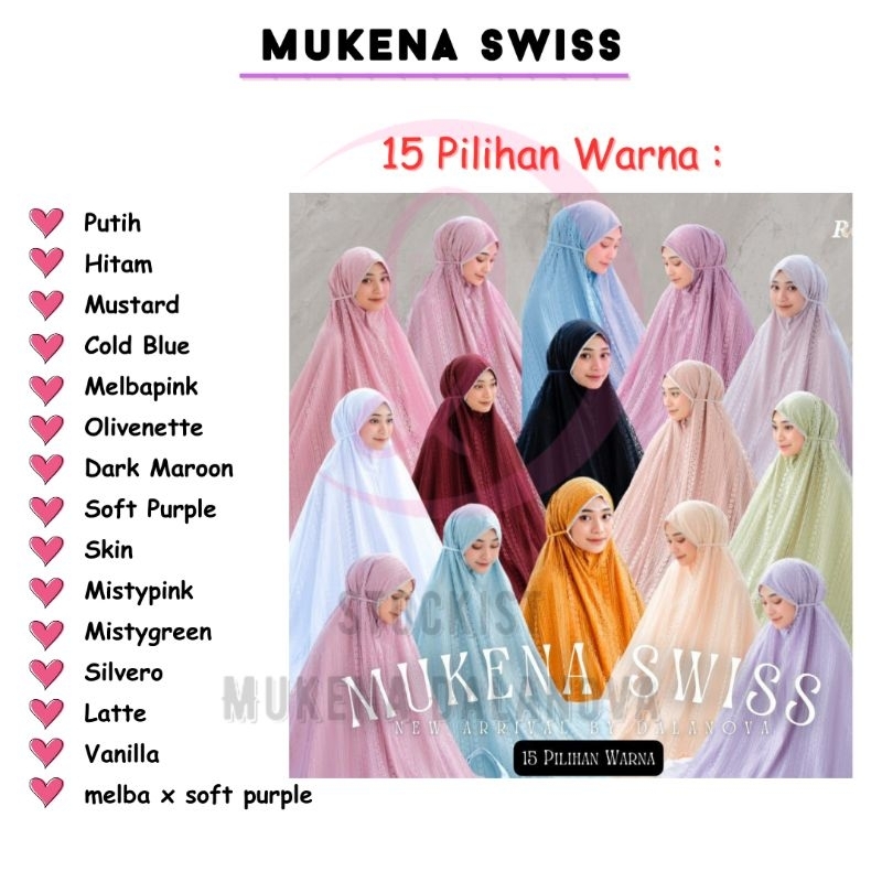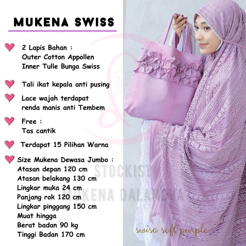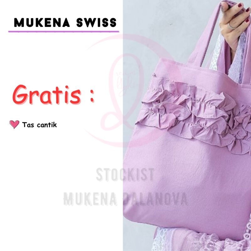 Mukena Swiss Dalanova Terbaru Size Dewasa Jumbo Bahan Apollen Cotton dan Tulle Bunga Ala Swiss Free Gift
